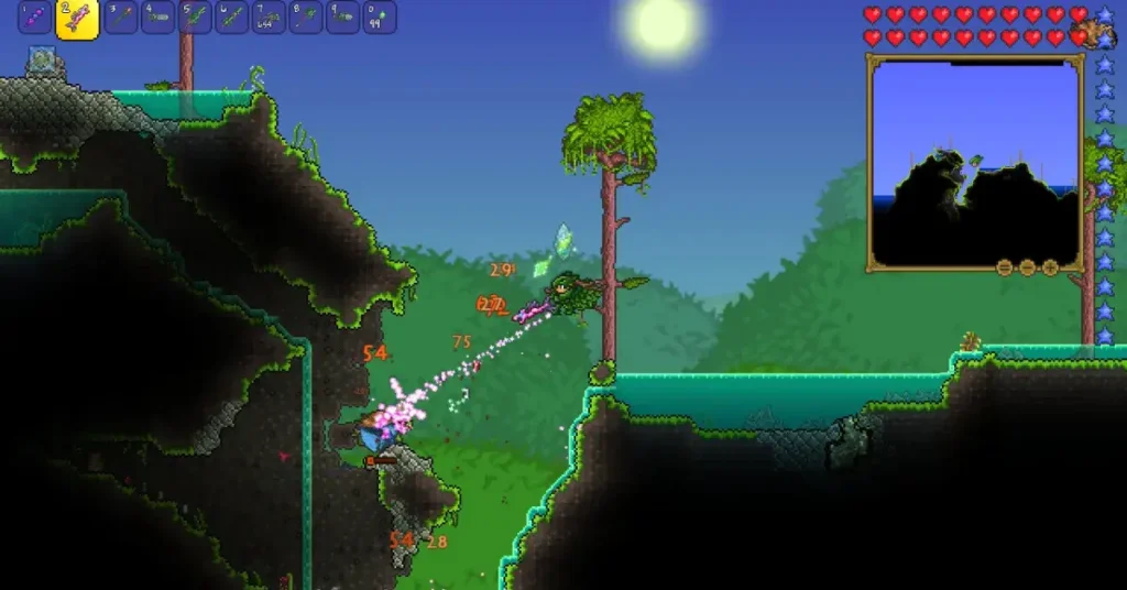 Terraria está construido utilizando un motor de juego multiplataforma que permite gráficos de alta calidad y mecánicas de juego fluidas: